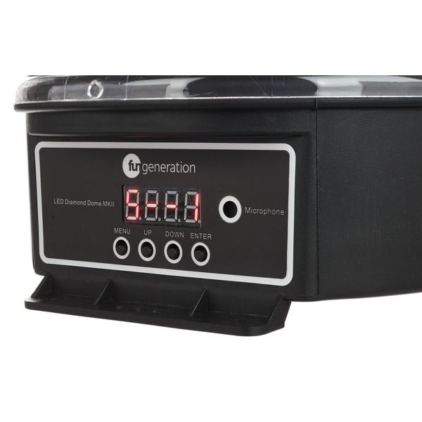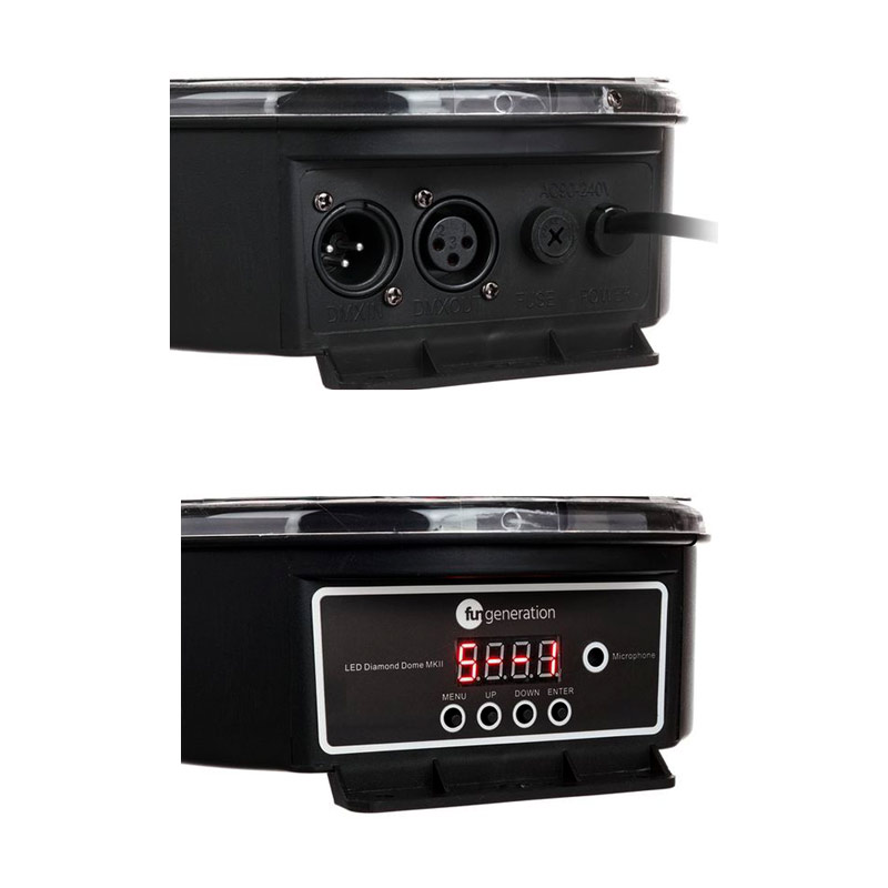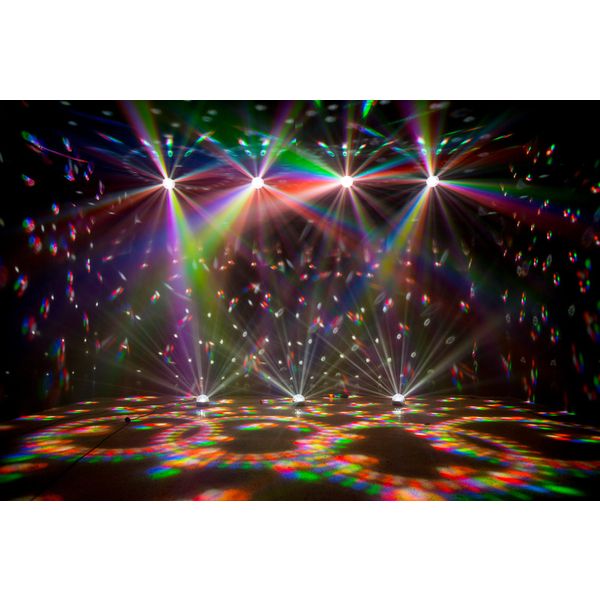 Poate fi operat cu ușurință în modul automat, cu diverse programe integrate și în modul sunet la lumină sau controlat prin DMX-512 (9 canale) și telecomandă cu infraroșu - inclusă în livrare