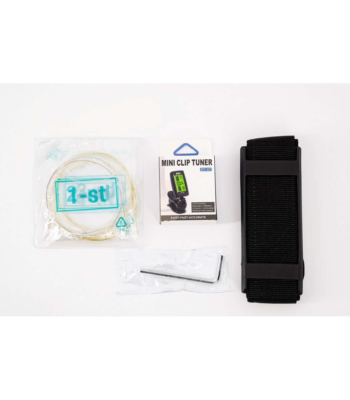 в комплекте аксессуары: тюнер, ремень, набор струн