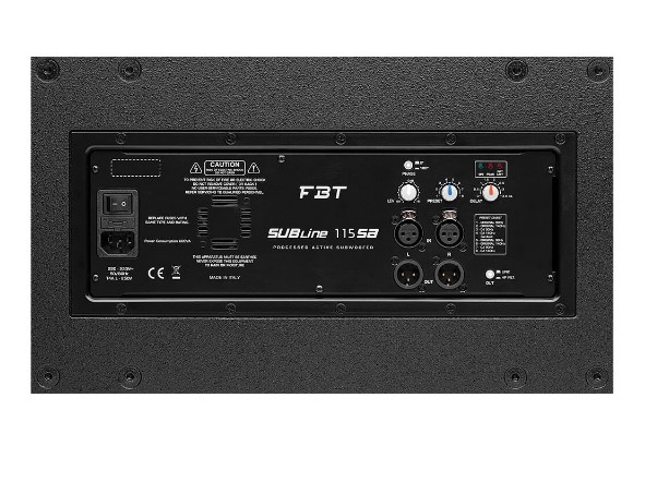Конструкция SPL с фазоинвертором 380-мм (15") НЧ-динамик с 75-мм (3") звуковой катушкой Амплитудно-частотная характеристика: 40 Гц - 140 Гц Усилитель класса D мощностью 700 Вт (RMS) Цифровой процессор с 8 предустановками 2 эквалайзера с 2 настройками, кроссовер Панель управления со стереовходом/выходом XLR, регулировкой громкости, предустановками эквалайзера, переключателем фазы 3 светодиодных индикатора Изготовлен из специального материала, устойчивого к царапинам, толщиной 15 мм Низкочастотный динамик: 38 Гц - 140 Гц -6 дБ Дисперсия: всенаправленная (по горизонтали и вертикали) Входное сопротивление: 22 кОм Частота кроссовера: 90 или 140 Гц (кГц) Входной разъём: стерео XLR с петлёй, выход HP Кабель питания: 6/19,7 м/фут Размеры нетто (ДxШxГ): 500x517x570/19,7x20,3x22,4 мм/ дюйм Вес нетто: 28/61,7 кг/фунт Размеры в упаковке (ДxВxГ): 600x617x670/23,6x24,3x26,4 мм/дюйм Вес в упаковке: 32/70,5 кг/фунт