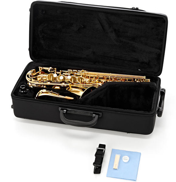 В комплекте: легкий футляр с ремнями для рюкзака, мундштук Yamaha 4C, ремешок для саксофона и пробковая смазка
