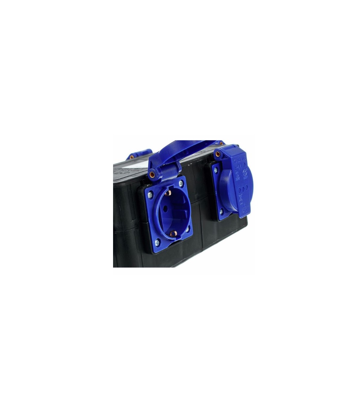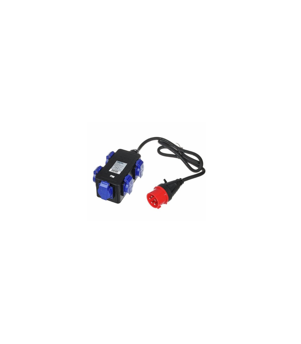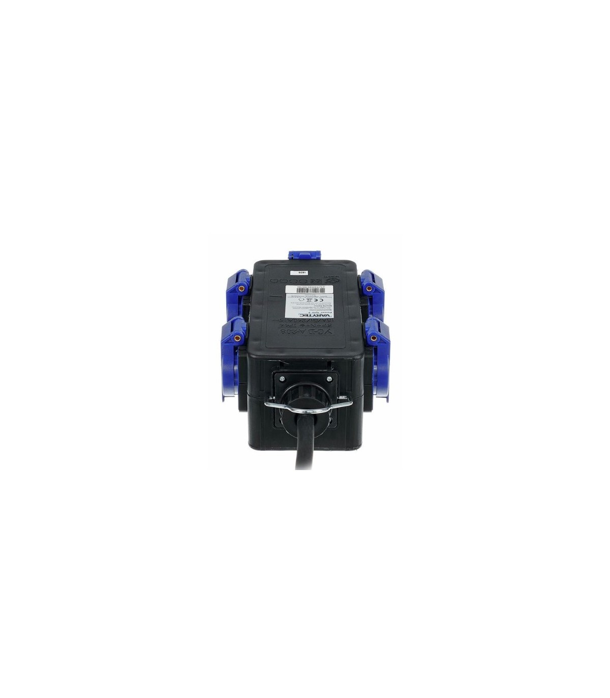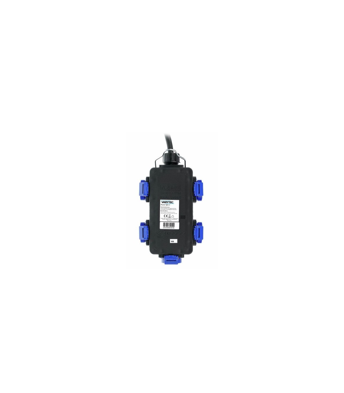 Distribuitor de putere Varytec Power Split 2 cu cablu de alimentare de 1.5 m, conexiune de intrare prin intermediul 16A CEE soclu cu 5 pini și 5 prize albastre de siguranță