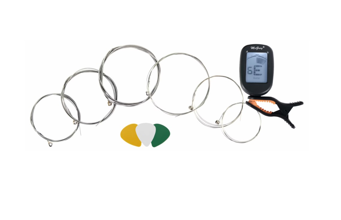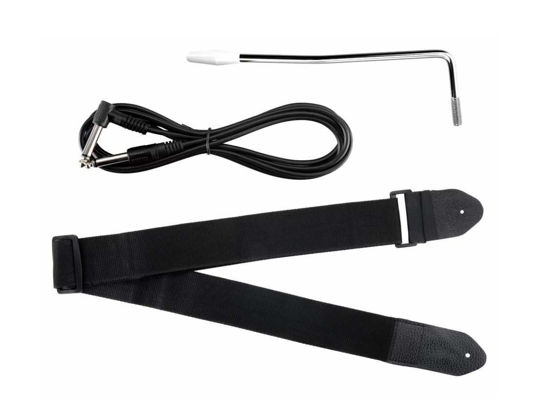 - Accesorii incluse: tuner, husă chitară, cablu, strap, set corzi de rezervă și pene