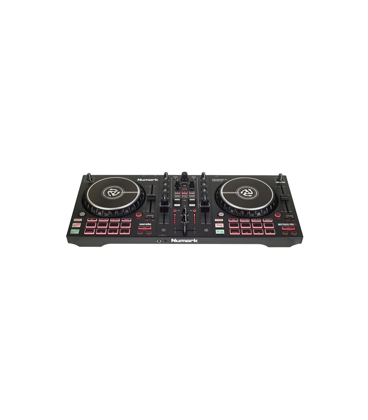 Controller DJ Numark Mixtrack Pro FX cu 2 canale, EQ pe 3 benzi si filtru. Iesirile sunt RCA nebalansate, joguri sensibile la atingere de 102mm si pitch de 100mm. Vine in pachet cu Serato DJ Lite si pachetul de sunete Prime Loops (Remix Tool Kit).