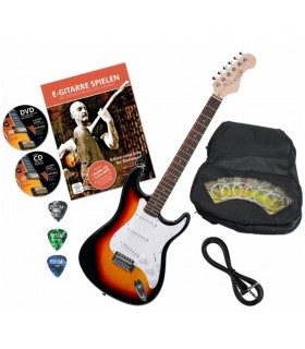 Set chitară electrică Rocktile Sphere Classic SB Bundle 00034527 cu accesorii incluse: husă pentru chitară electrică, cablu pentru chitară, 3 pene, 1 set de corzi de rezervă, manual de învățare (limba germană) cu CD audio cu 38 de exerciții și melodii și DVD cu lecții, plus link de download pentru toate videoclipurile pentru studiu la calitate HD