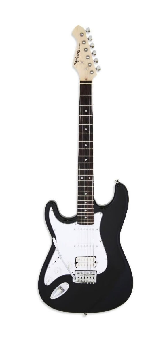 Электрогитара в комплекте с чехлом, для левшей, типа Strat, с тремя звукоснимателями Single Coil, удобным грифом и черной отделкой, идеально подходит для начинающих и гитаристов, ищущих универсальный и доступный инструмент.
