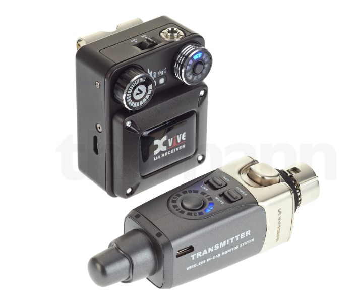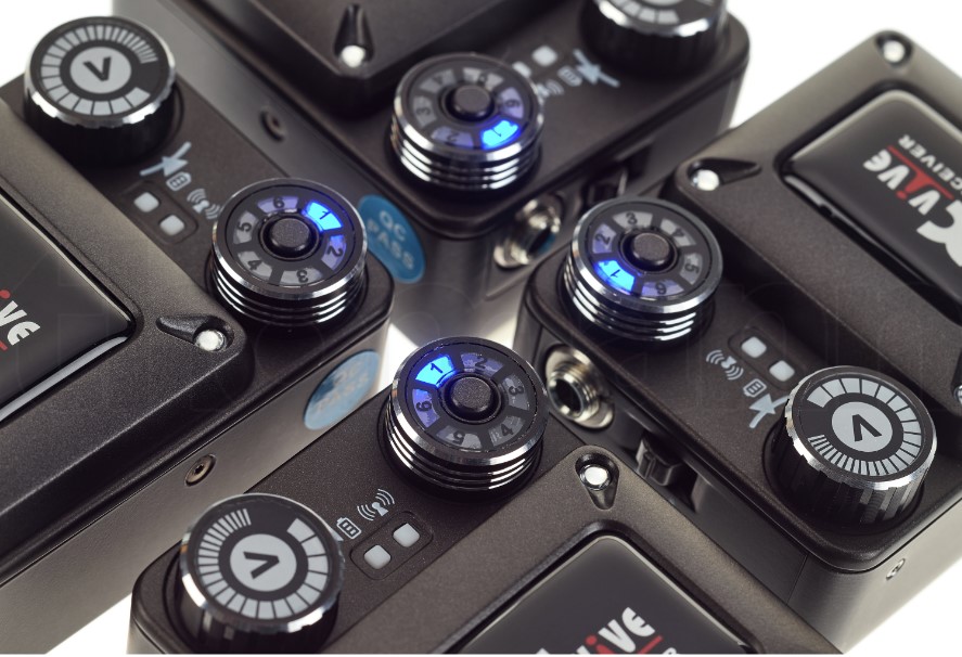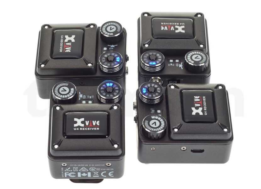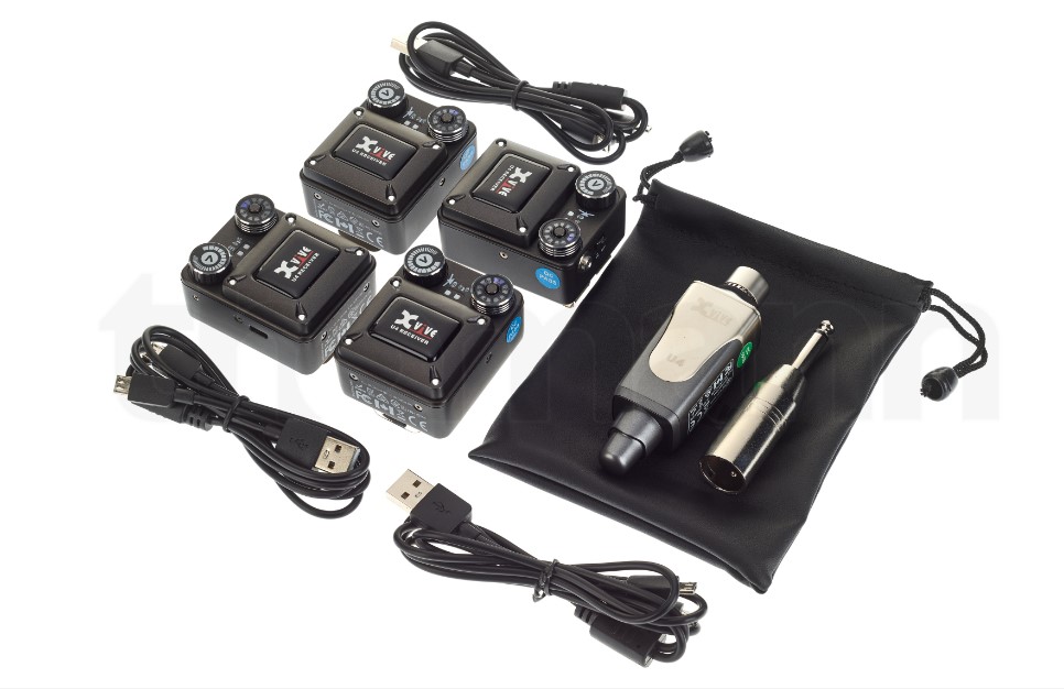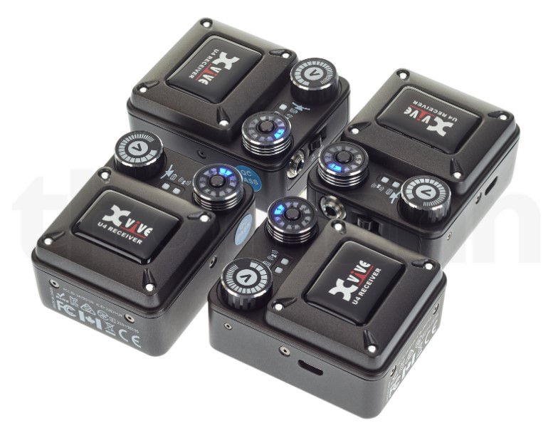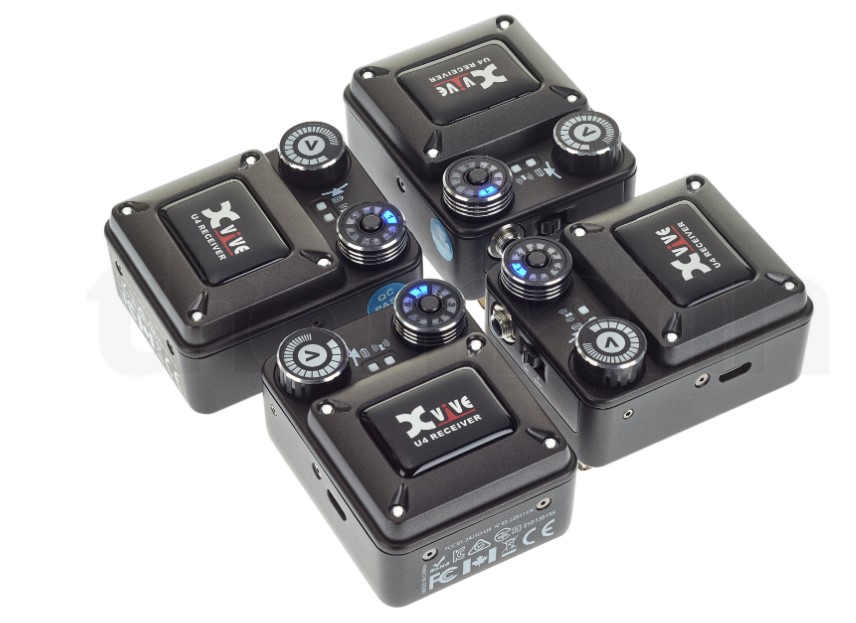 Беспроводная система XVive U4, комплект 4R, включающая 1 передатчик и 4 приемника.