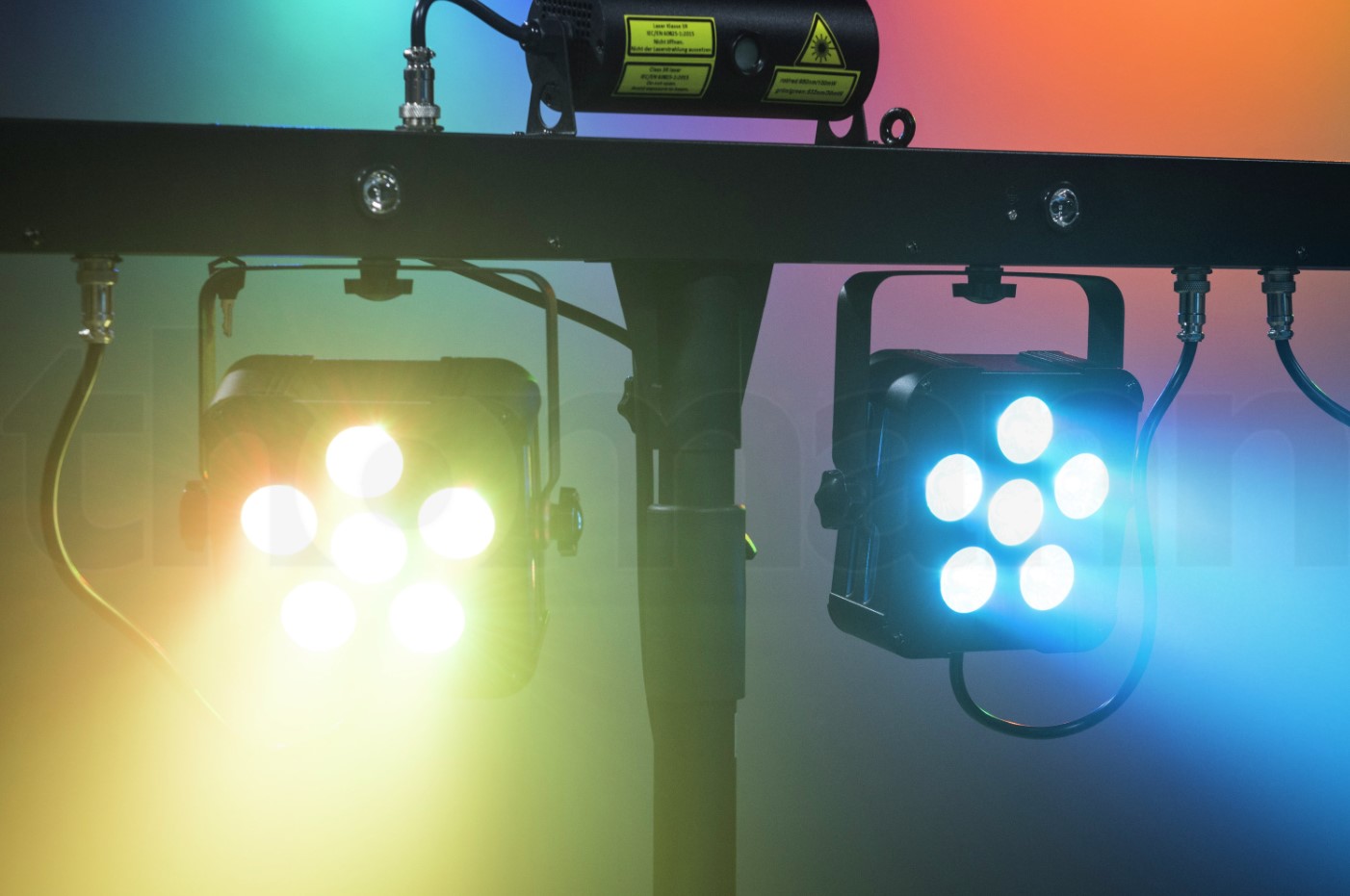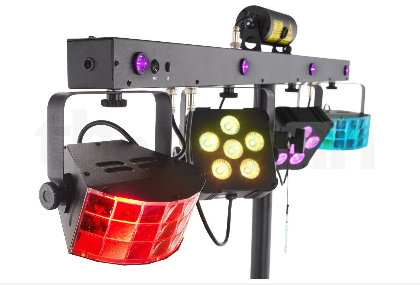 - contine 2 efecte tip derby, 2 proiectoare PAR Slim, stroboscop si un laser